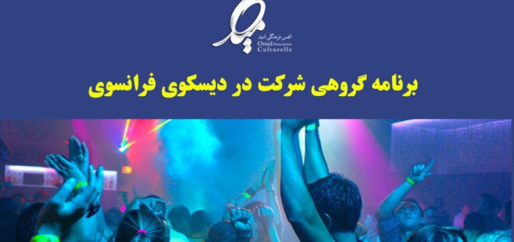 گروهی از همراهان انجمن فرهنگی امید این هفته (شنبه ۲۴ فوریه) بعد از پنجاه و چهارمین نشست گفتگو به اتفاق به یک دیسکوی فرانسوی خواهند رفت. برای اطلاعات بیشتر به پوستر های زیر توجه...
