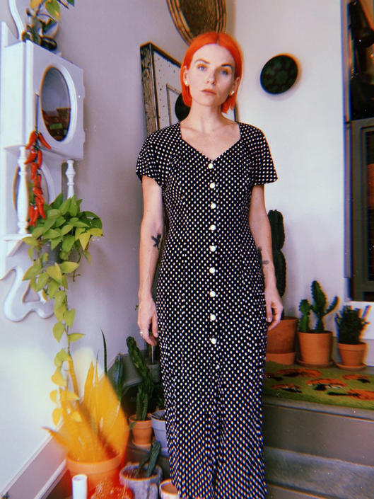 90s Polka Dot Button Down Midi Dress The Metal Romantic Shop Atlanta GA Very well made.
