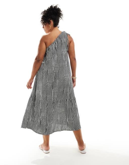 ONLY Curve one shoulder tiered hem maxi dress in black white wave stripe Very well made.